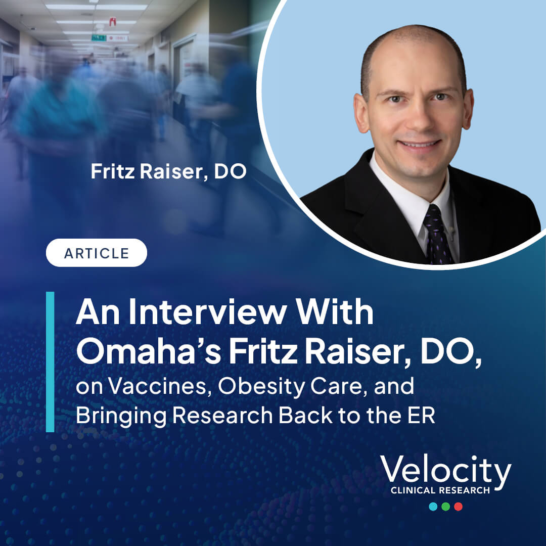 That experience is one he gets to relive yearly, with vaccine trials a core focus at Omaha. Today, Dr. Raiser and the team at Velocity’s Omaha site are working on vaccines to help prevent respiratory syncytial virus (RSV), norovirus, as well as emerging threats. “It’s rewarding to imagine the eventual impact of that work,” he explains. “Fewer ER admissions, fewer seasonal surges, and better protection for the elderly and young.”