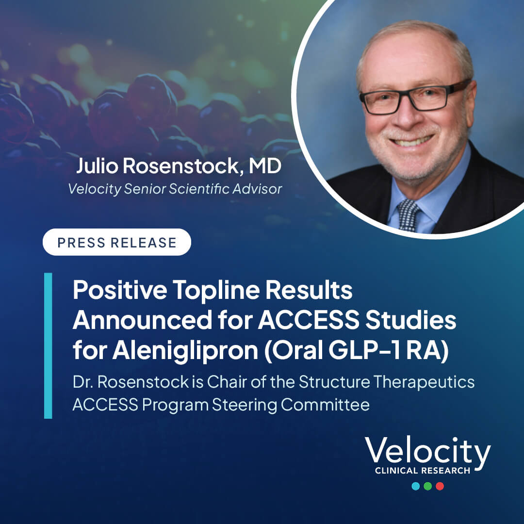 Julio Rosenstock, MD, Chair of the ACCESS program Steering Committee and Senior Scientific Advisor at Velocity, is quoted in the press release: “The weight-lowering data from these ACCESS studies, without any evidence of a plateau by Week 36, are very encouraging — particularly weight loss of up to 15.3% in ACCESS II that hopefully will be confirmed in larger, longer-term studies… As once-daily oral, non-peptide, small molecule GLP-1 RAs such as aleniglipron become available, they have the potential to transform obesity treatment and broaden access, which could have a profound impact on patients globally.”